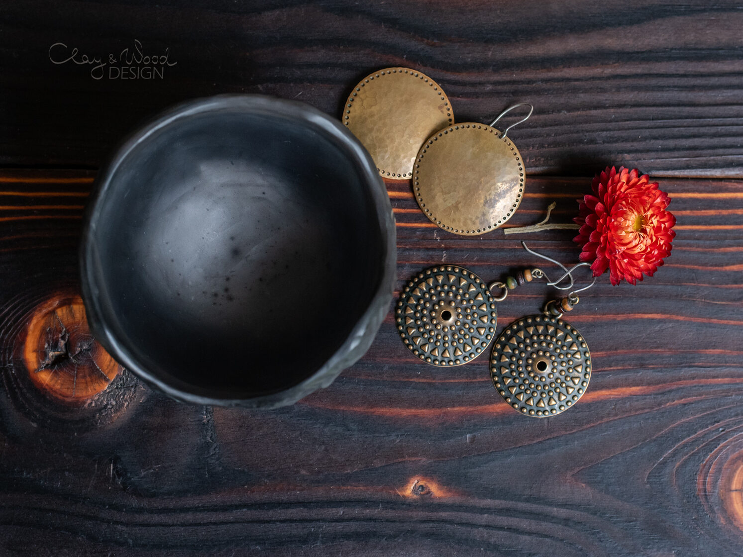 Handmade Black Ceramic Jewelry Dish: Nordic Minimalist Pottery Bowl -
