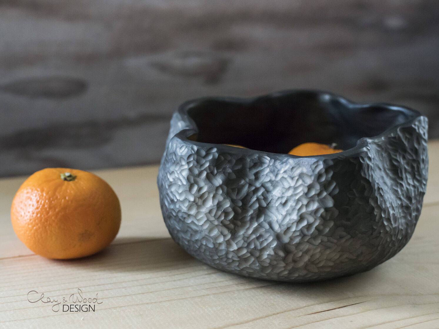 Handmade Textured Black Ceramic Bowl: Modern Nordic Centerpiece -