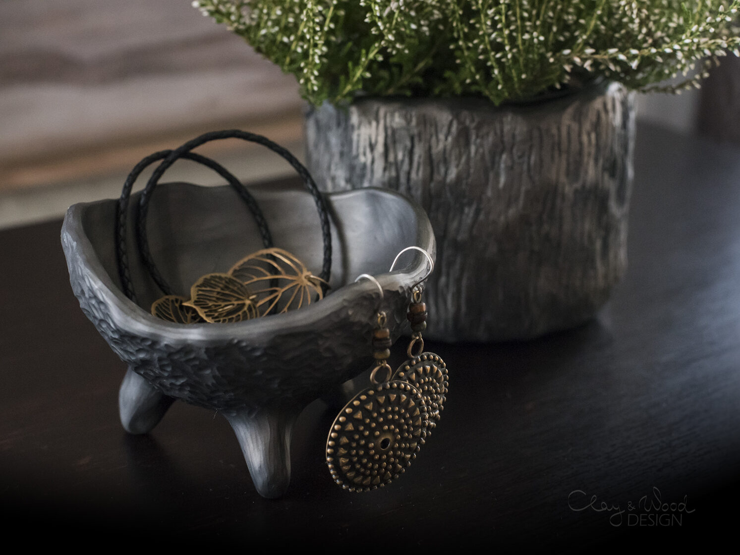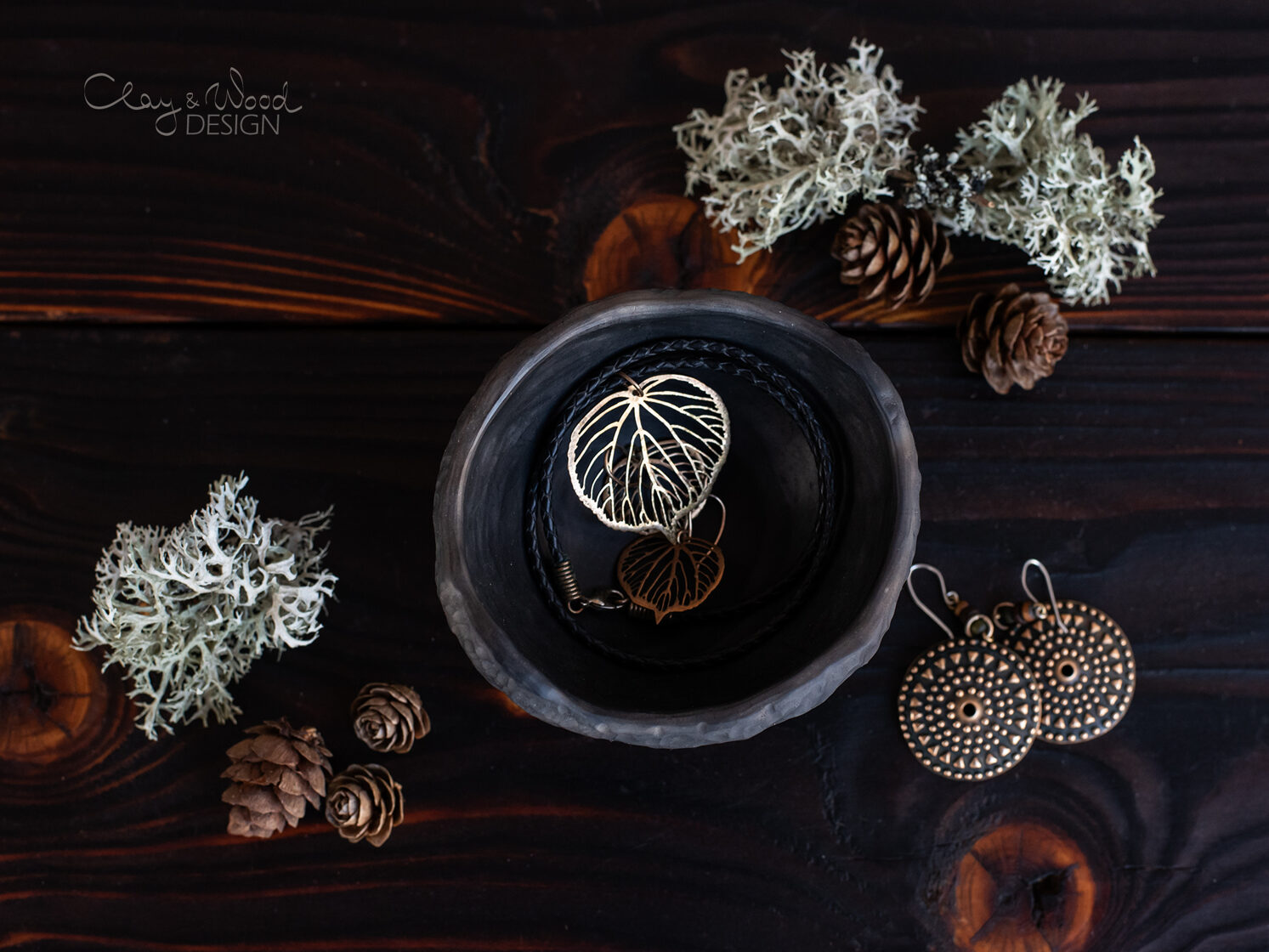 Handmade Black Ceramic Jewelry Dish Textured Nordic Minimalist -