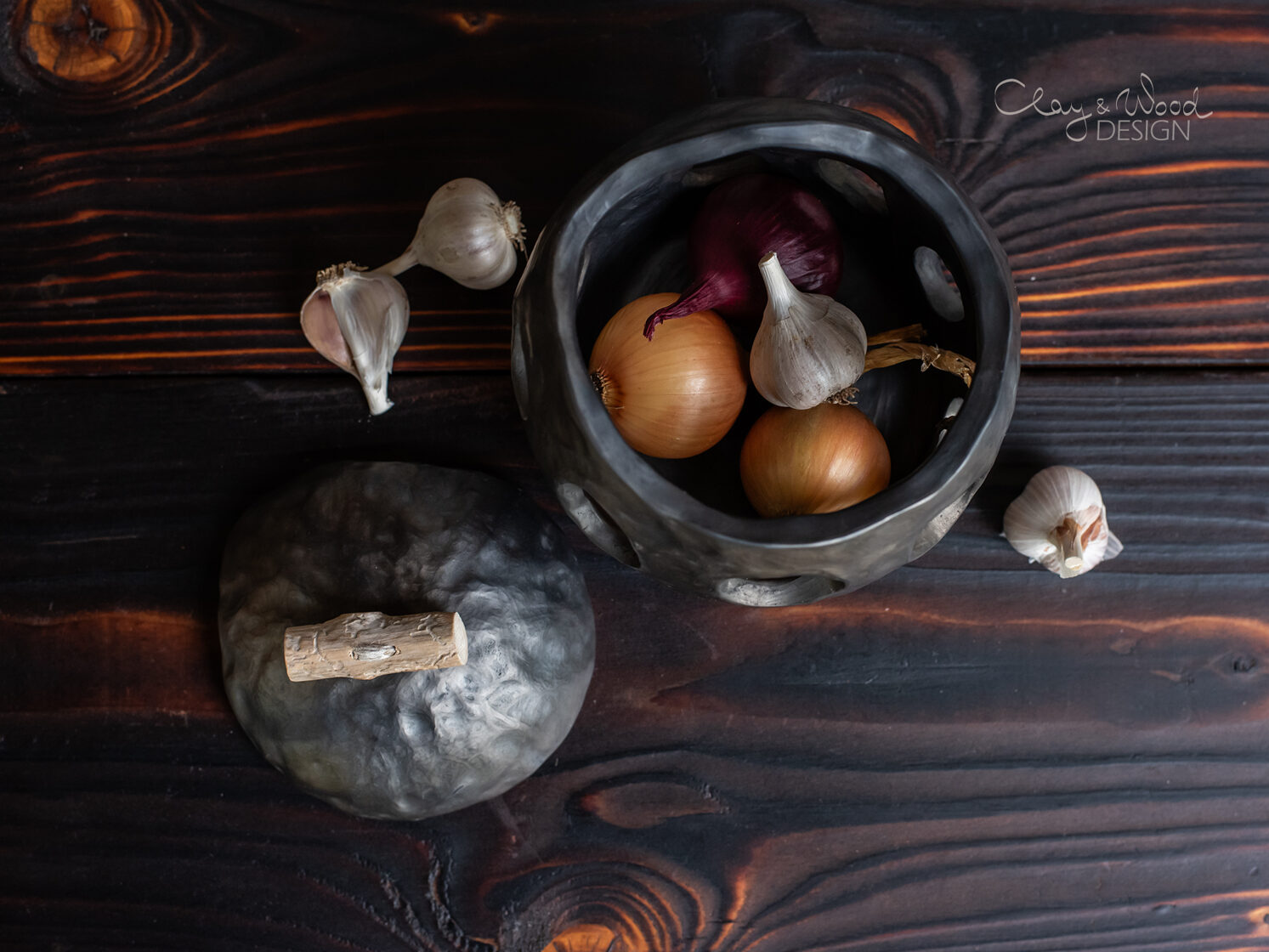Handmade Ceramic Onion & Garlic Cellar Modern Home Accent -