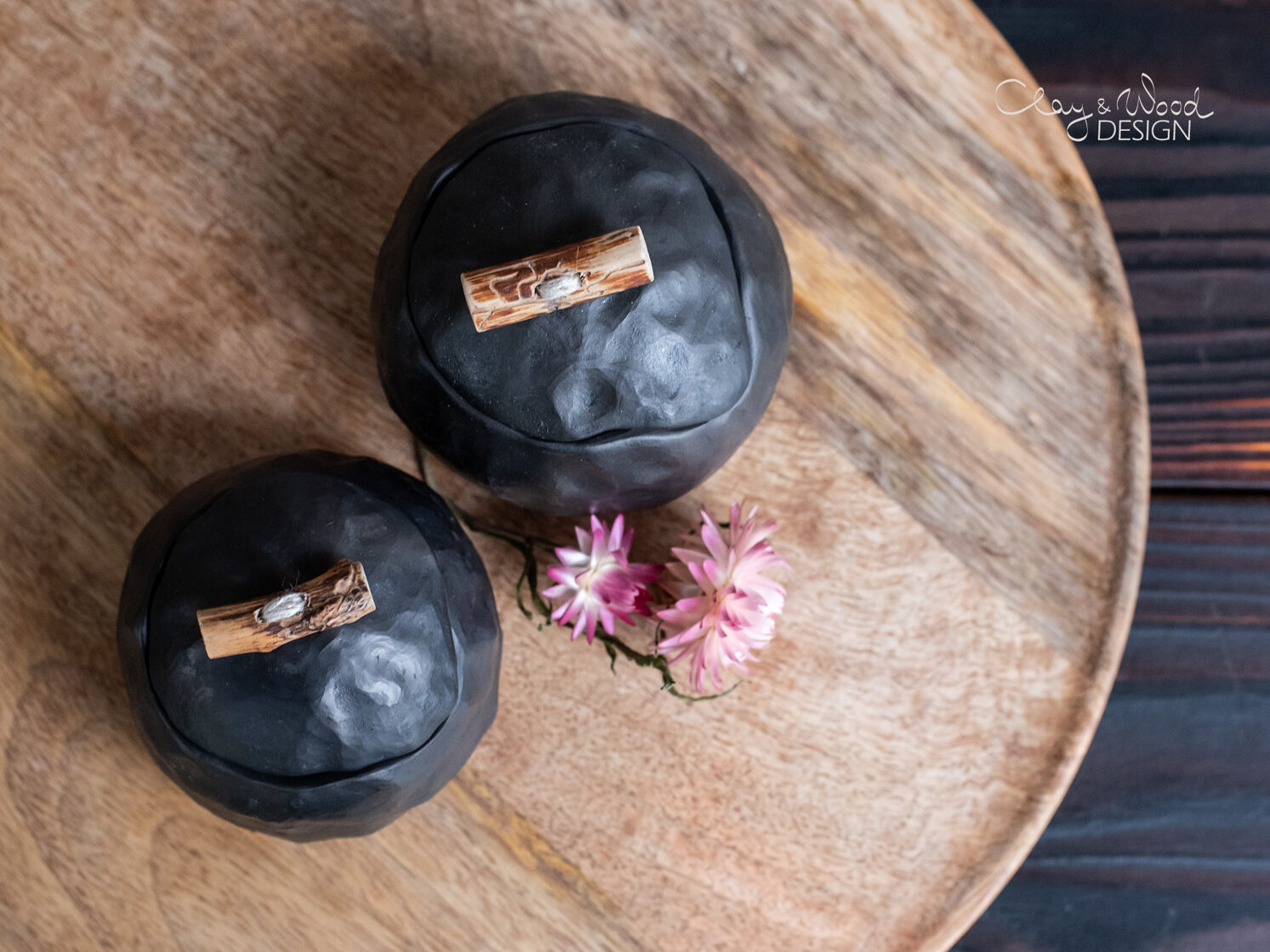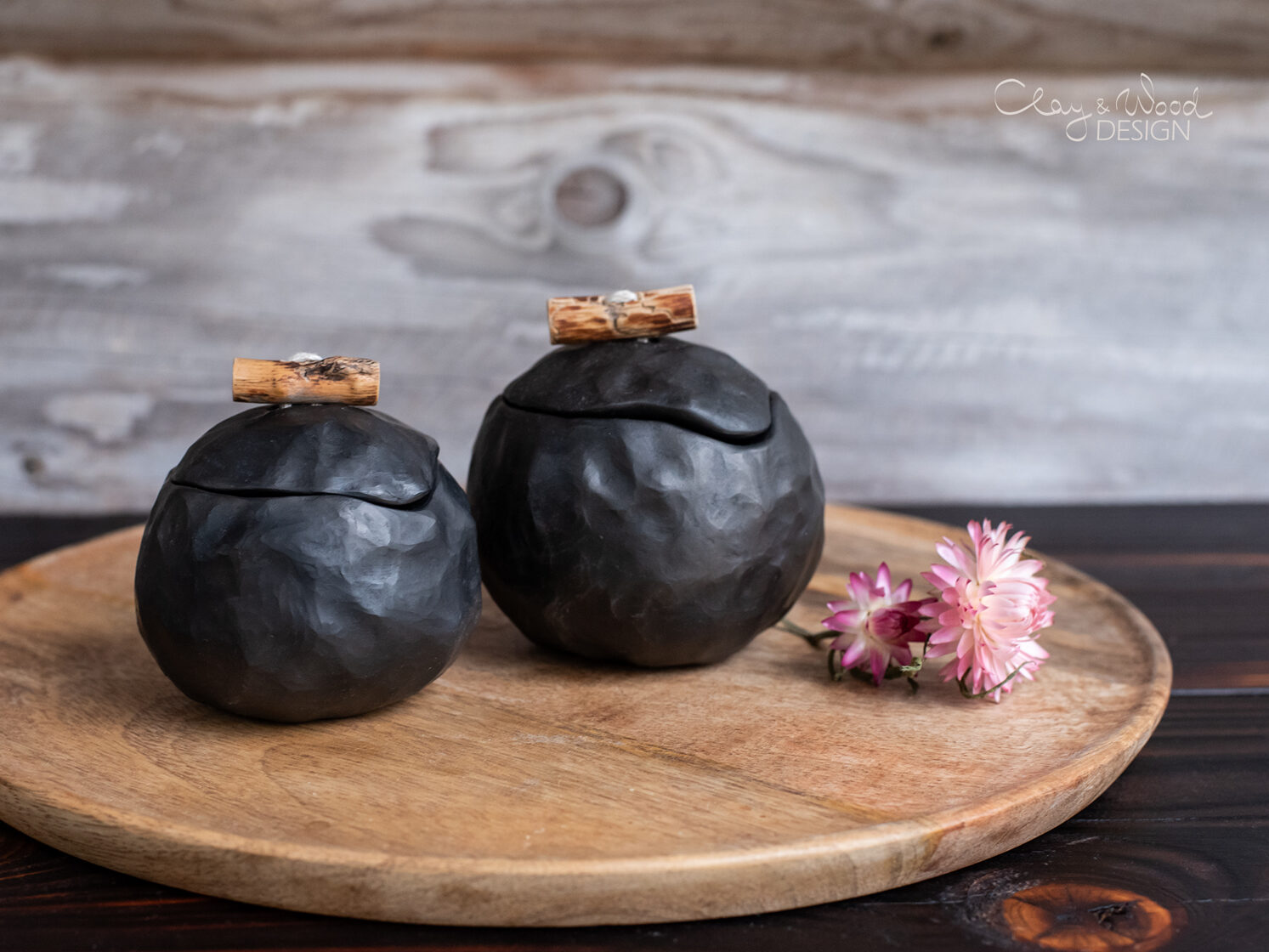 Handmade black ceramic pots with lids -